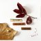 Les textes sont gravées dans des polices différentes et des couleurs de cuirs automnales.
