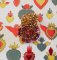 Broche ex-voto en perles brodées main inspirée du coeur sacré de Jésus, aux couleurs chaudes et vives d'inspirations mexicaines.