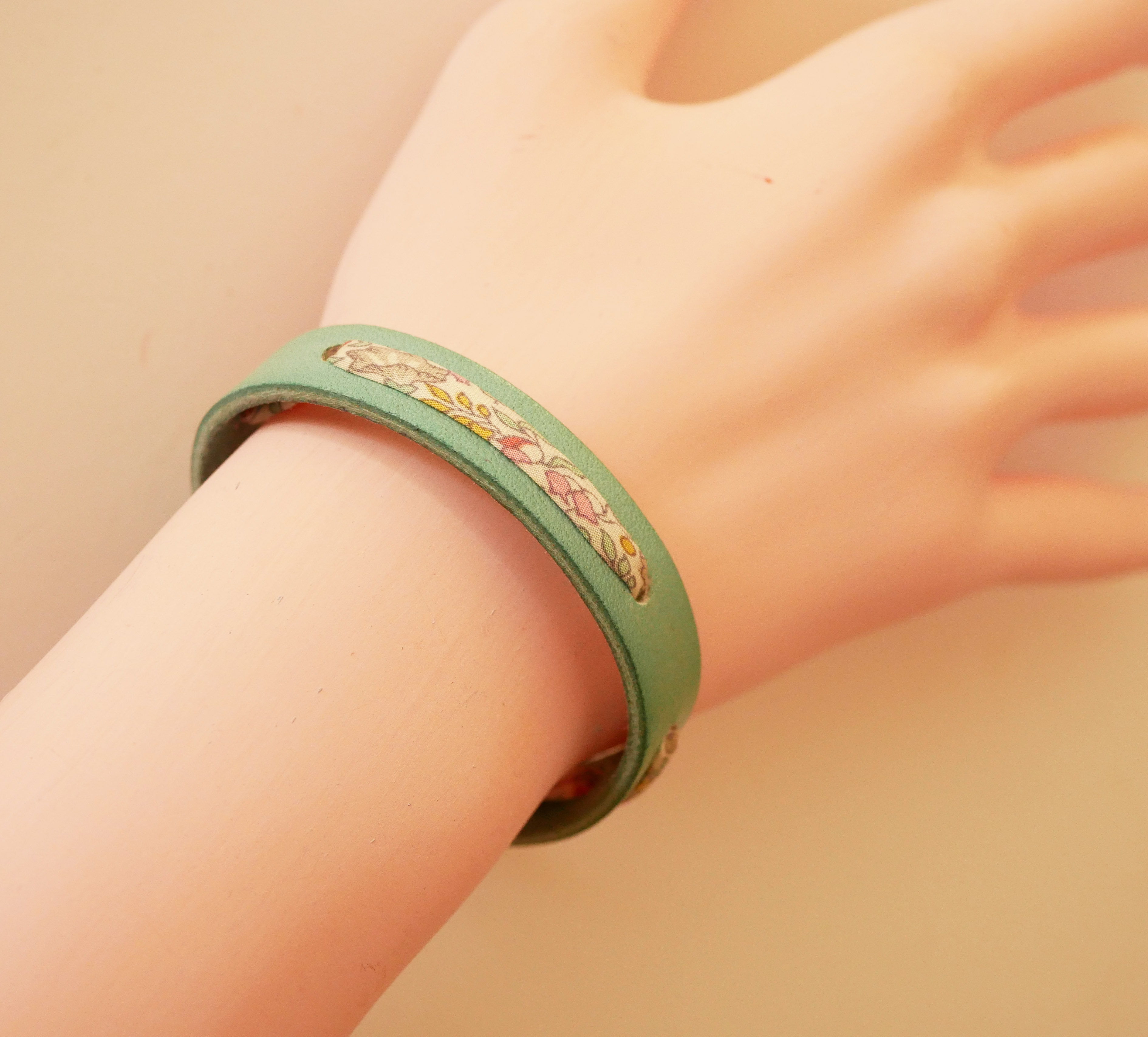 Bracciale in pelle verde e nastro di cotone Liberty of London Katie e Millie a fiori pastello