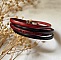 Per impostazione predefinita, il bracciale è adattato a un polso di 19 cm (molto largo): per un polso più piccolo è possibile adattare facilmente il bracciale. Oppure comunicatemi le dimensioni del vostro polso in modo che possa adattarlo per voi. Per un polso più grande di 19 cm, vi prego di indicare la misura nei parametri. INCISIONE Potete scegliere di far incidere un testo a vostra scelta sul bracciale, all'interno per un messaggio confidenziale o su entrambi i lati. Si prega di indicare qui sotto il testo (o i testi) e il numero di carattere che si preferisce (altrimenti il n°7 è predefinito). Si possono avere nomi, date, coordinate GPS, citazioni, il testo di una canzone, un messaggio ispiratore, una dichiarazione d'amore... e simboli come un cuore, il segno dell'infinito.Più scuro è il colore del cuoio, più discreta è l'incisione. Scegliere anche la confezione regalo, per un bracciale pronto da offrire. Bracciali impilabili o da associare a un bracciale dello stesso cuoio a triplo giro, o a un bracciale con cuoio più largo, 10 mm, a singolo o doppio giro di polso, da trovare sul negozio.